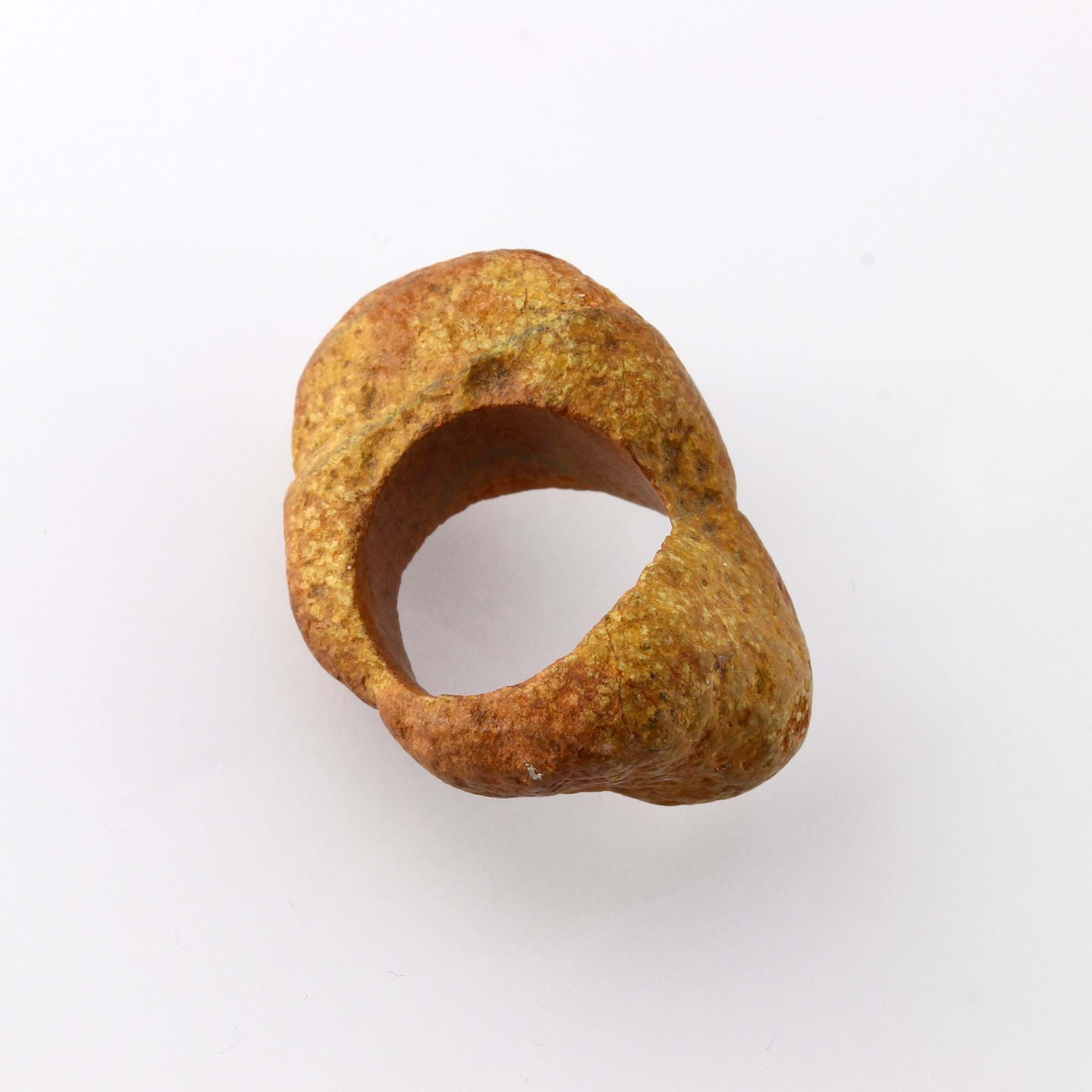 this ring was made by grinding a finger space through a chunk of brick. i was experimenting with using recycled materials. it was harder to do than it looks, and also surprisingly comfortable
