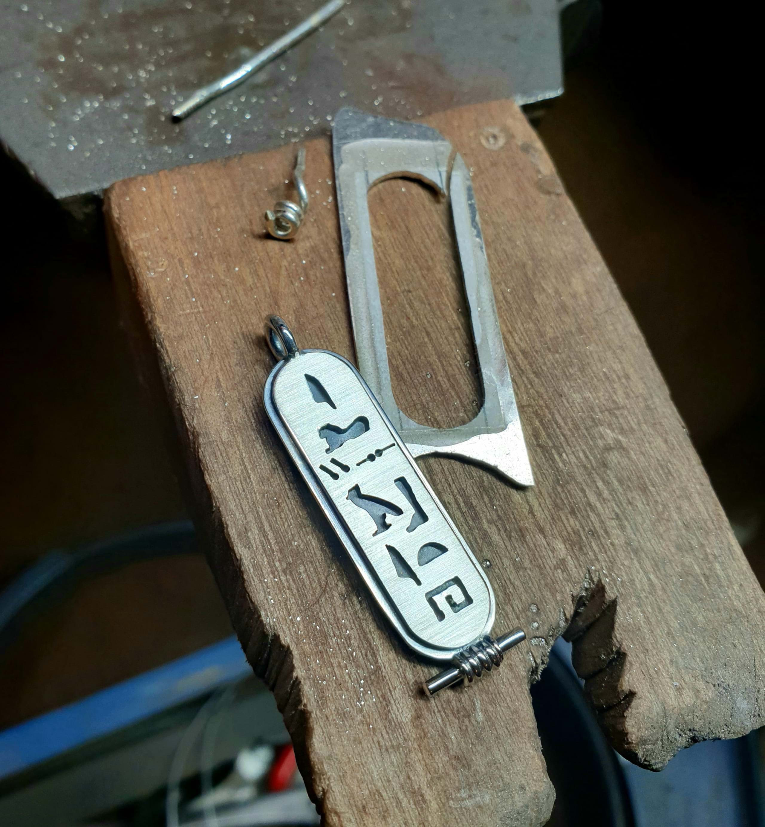 this namesake pendant was made for 9 year-old Elizabeth who was studying egyptian culture and history at school. the writing is a literal letter for letter translation - not how an ancient egyptian would do it!
