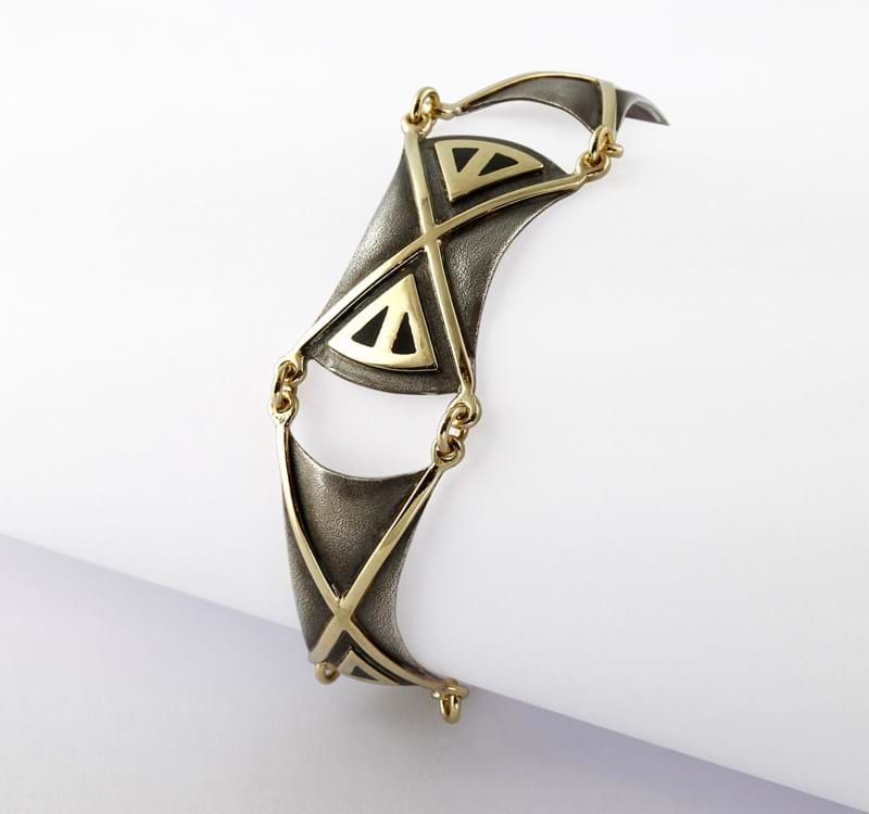 oxidised silver and 9ct yellow gold bracelet with black enamel